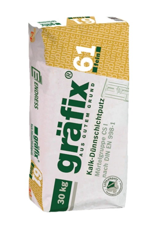 Der Gräfix 61 Fein ist ein besonders feinkörniger, zementfreier Luftkalkputz, der speziell für den Innenbereich entwickelt wurde. Dank seiner feuchtigkeitsregulierenden Eigenschaften sorgt er für ein gesundes Wohnklima und trägt durch seinen Clean-Air-Effekt aktiv zur Luftreinigung bei, indem er Stickoxide aus der Raumluft aufnimmt.